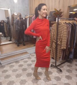 A kapute za ove hladne dane Ana je birala u modnom salonu Calico Mood također hrvatskog dizajna i vrhunske kvalitete. Boje prekrasno stoje Ani pa je uživala isprobavajući kaput  rozne boje, prekrasne svečane haljine za razne domjenke u ovo doba godine, crvenu, sivu. Uz Aninu zavidnu liniju i boju kose sve modne kombinacije stajale su joj odlično.